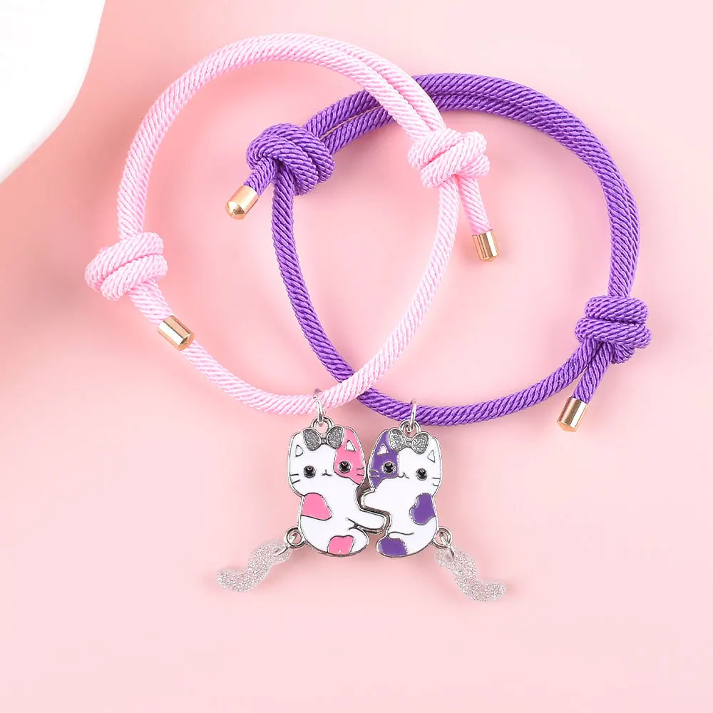 2025 New Design: 2/3Pc Cute Cat Heart Charm Magnetic Bracelets