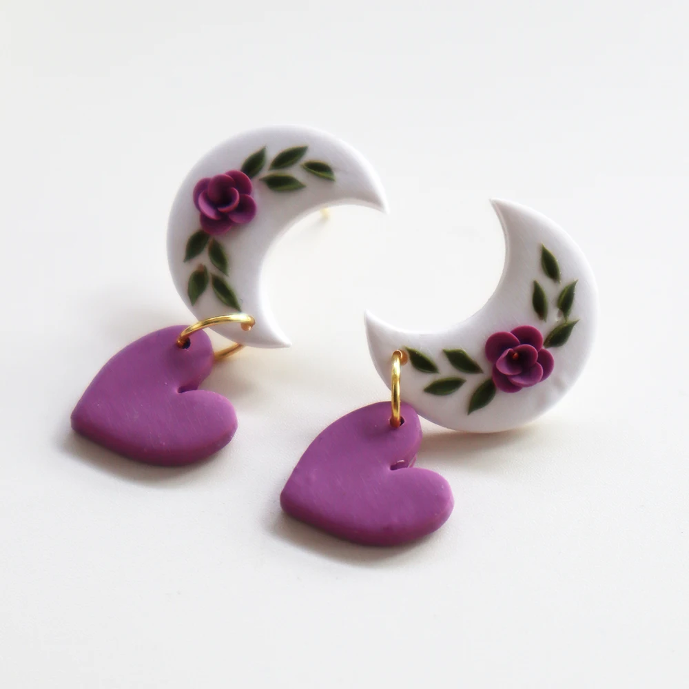 New Polymer Clay Heart Earrings Women Handmade Mother's Day Moon Drop Earrings Hearts Dangle Earring Jewelry Accessory