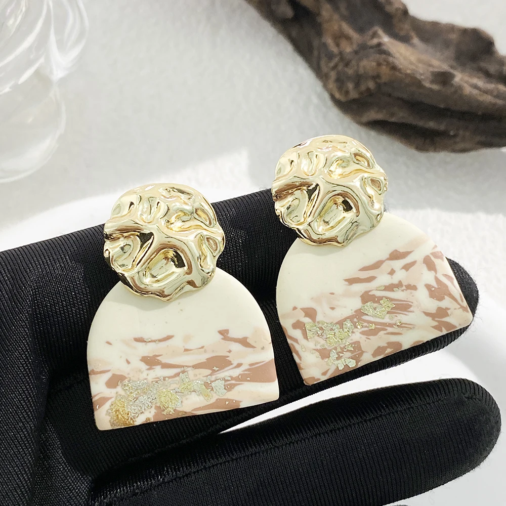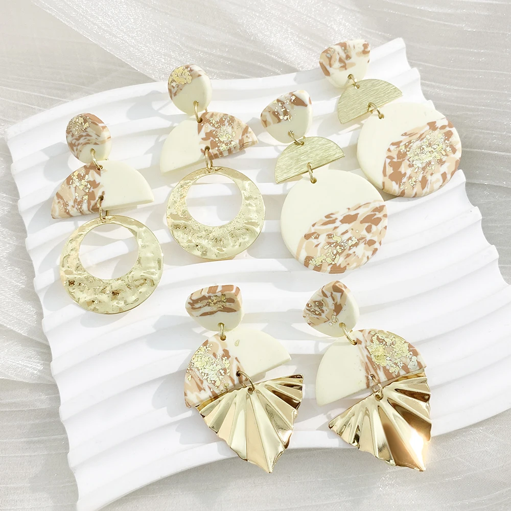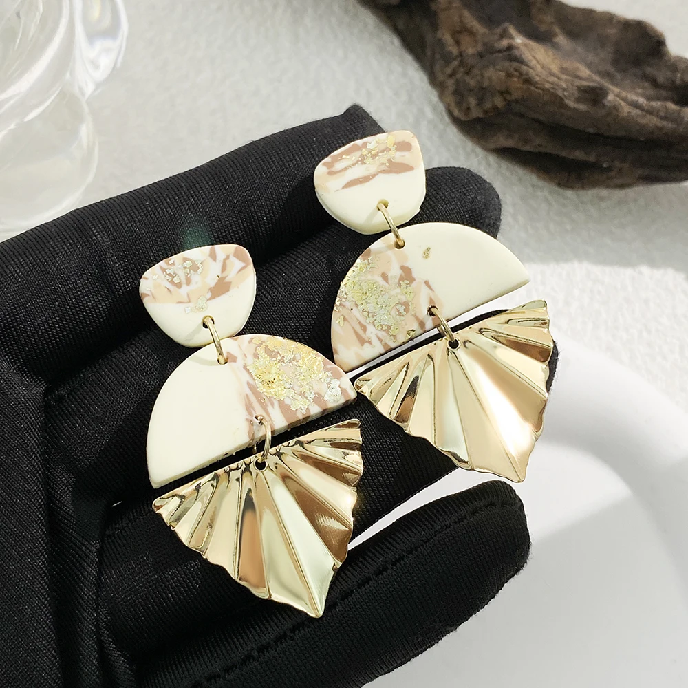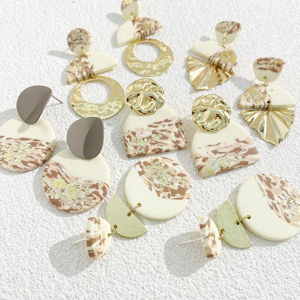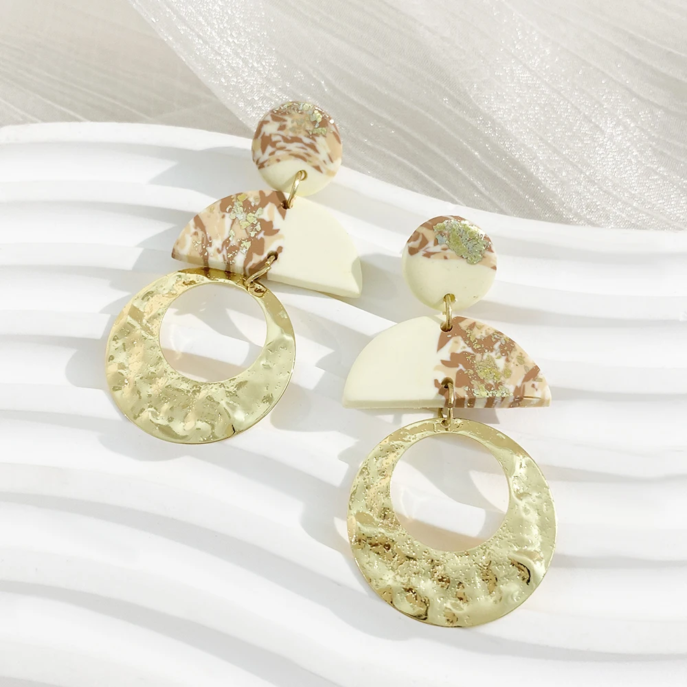 Summer Women's Colorful Earring Polymer Clay Metal Design Creative Print Classic Jewelry Cute Handmade Drop Earrings Chic